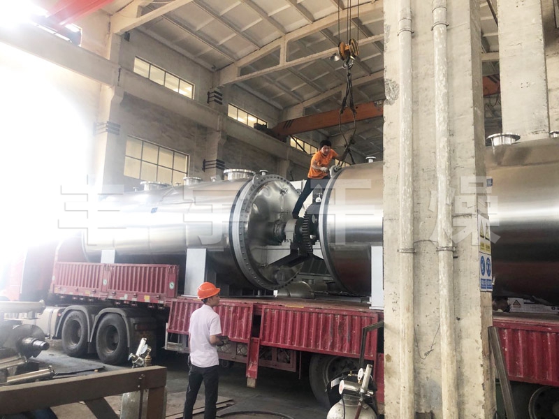 (3) 蒸汽耗量小 由于真空耙式干燥機多用蒸汽通入夾套,利用潛熱加熱物料,處理每公斤成品耗用蒸汽量較小,一般為1.3-1.8㎏蒸汽。