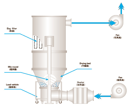 沸騰床干燥機可實行自動化生產,是連續式干燥設備。干燥速度快,溫度低,能保證產品質量,符合藥品生產GMP要求,蒸汽、電、熱風爐均可配用。
